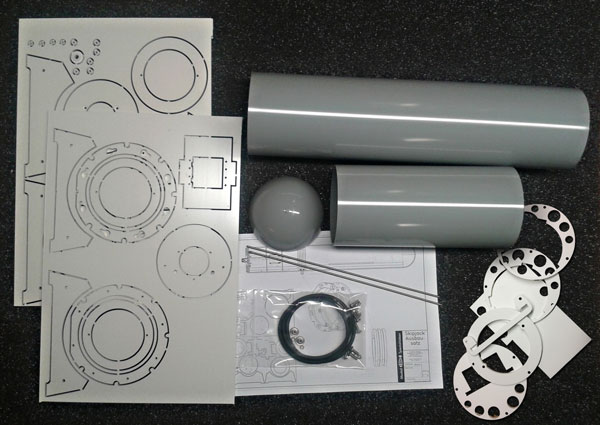 enthält gefräste Teile aus 6mm und 4mm PS, Rohrabschnitte aus PS, Dichtungen, Schrauben, Gewindestangen Plan